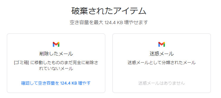 Gmailのゴミ箱にあるメールなど、不要と思われるファイルの候補が表示される。